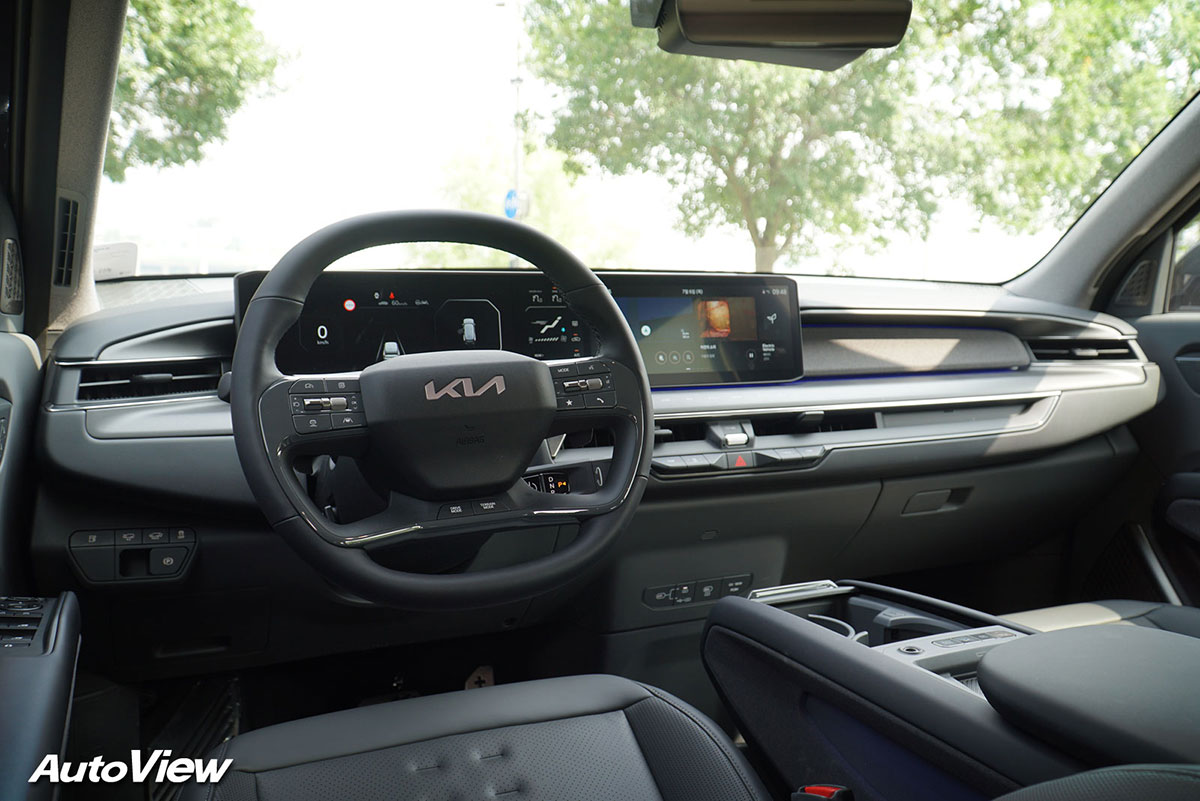 EV9을 보면 카니발과 다른 거대함이 느껴진다. 길이가 5m가 넘고 폭도 2m에 가깝다. 높이도 1.7m가 넘다 보니 EV9의 지붕을 보기는 힘들다. 휠베이스도 3.1m 수준으로 카니발 보다 길다. 그러나 실내 공간이 카니발보다 넓다는 느낌을 주지는 않는다.