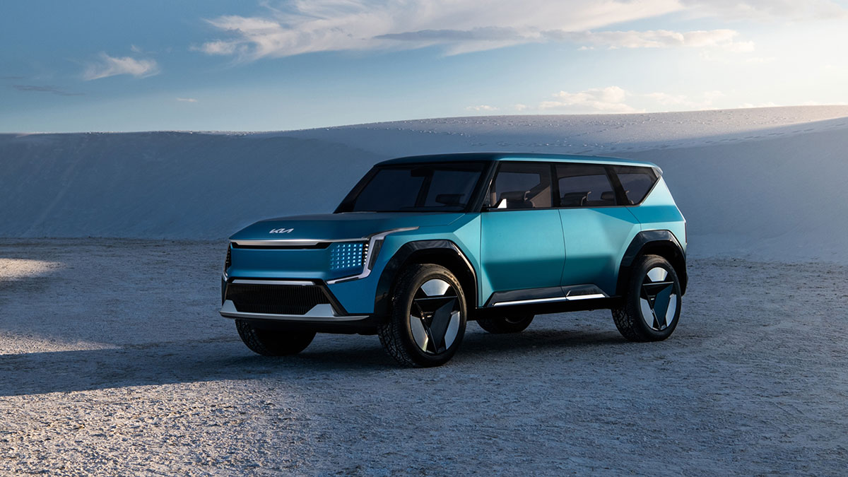 EV9의 디자인은 콘셉트카의 모습을 거의 그대로 옮겨왔다. 서로 상반된 개념을 창의적으로 융합시켰다는 오퍼짓 유나이티드(Opposites United) 테마를 중심에 뒀다.