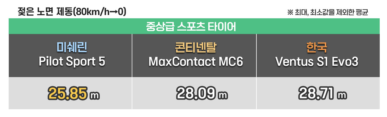 이렇게 국내 소비자분들이 중시하는 마른 노면에서 다양한 시험을 마친 결과 PS5가 가장 좋은 성능을 가진 것으로 나타났다.