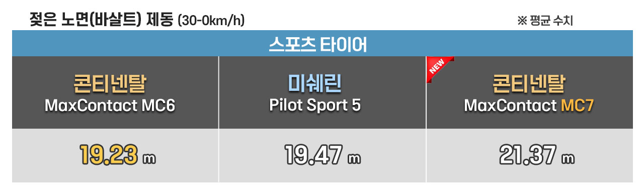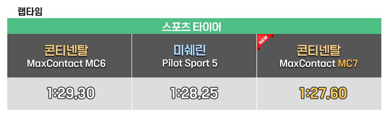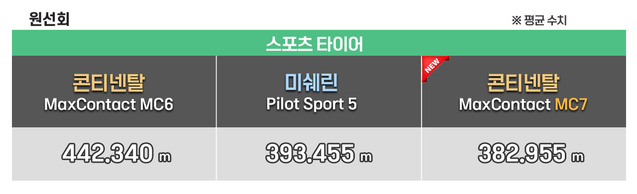 그런데 얼마 지나지 않아 콘티넨탈이 맥스콘택트 MC6의 후속 MC7을 내놨다. 신제품 발표 행사에 오토뷰도 초대했는데, 당시 서킷에서 이뤄진 행사에 전인호 기자가 다녀왔다. 그리고 행사에 다녀온 기자는 MC6 대비 제동, 젖은 노면 성능과 핸들링이 좋아졌다고 말했다.