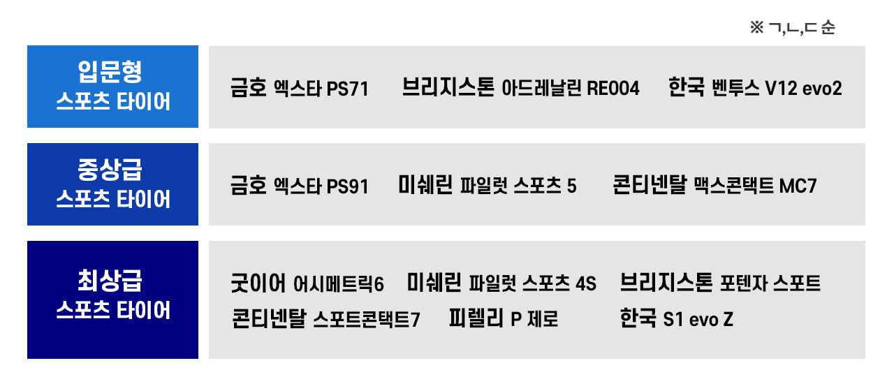 타이어 세계에도 등급이 존재한다. 저렴한 가격을 내세운 가성비 제품, 가격 보다 성능을 최대한 끌어올린 최고급 제품, 그리고 이들 사이에 위치하는 중간 등급의 제품들로 나뉜다. 그러나 우리는 오늘 비교하는 타이어를 중상등급 타이어라 부르는데, 입문형보다 최고급 제품에 가까운 성능을 가졌기 때문이다.