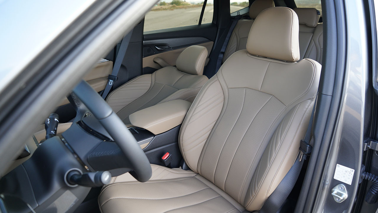 시트의 형태도 알핀 버전과 동일하지만 소재와 패턴이 다르다. 심플한 퀄팅 패턴을 갖췄으며 쿠션은 적당한 단단함으로 편안한 여정을 보낼 수 있다. 당연하게도 통풍과 히팅 기능을 적용해 아쉬움이 없다. 뒷좌석 시트에도 히팅 기능이 갖춰지며 별도의 공조장치 컨트롤 디스플레이 및 USB 포트도 지원된다.