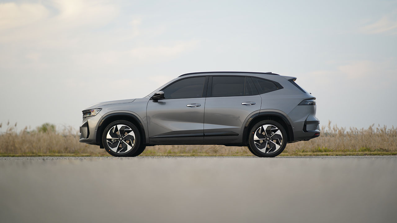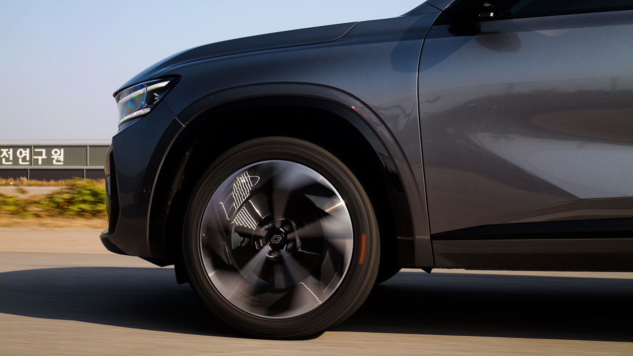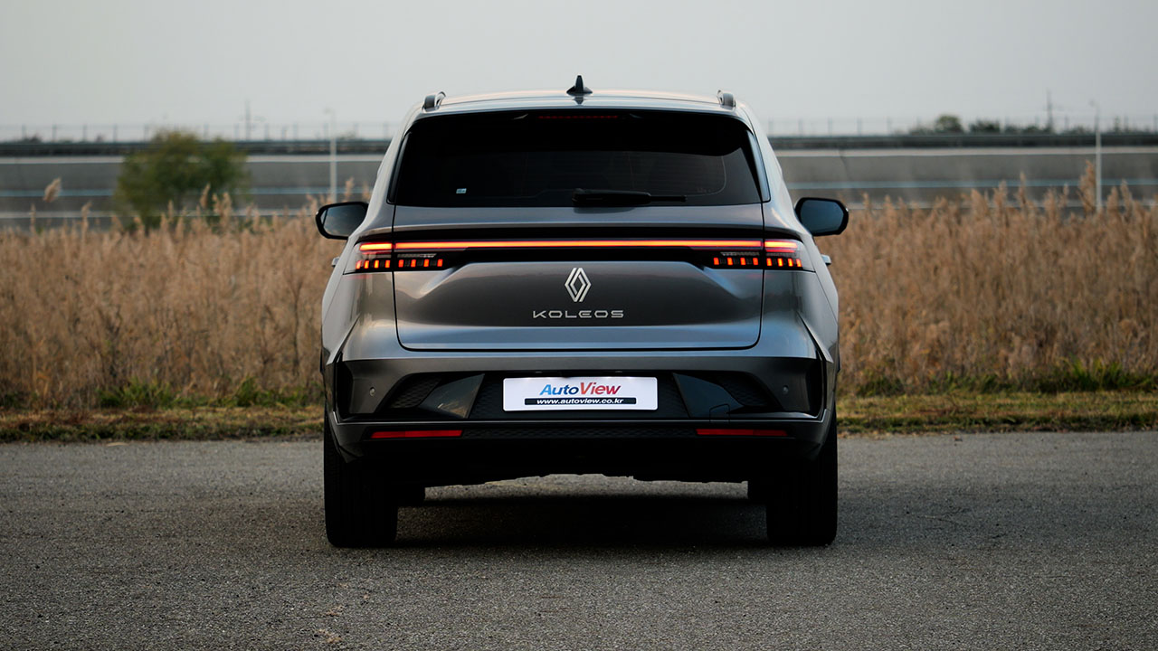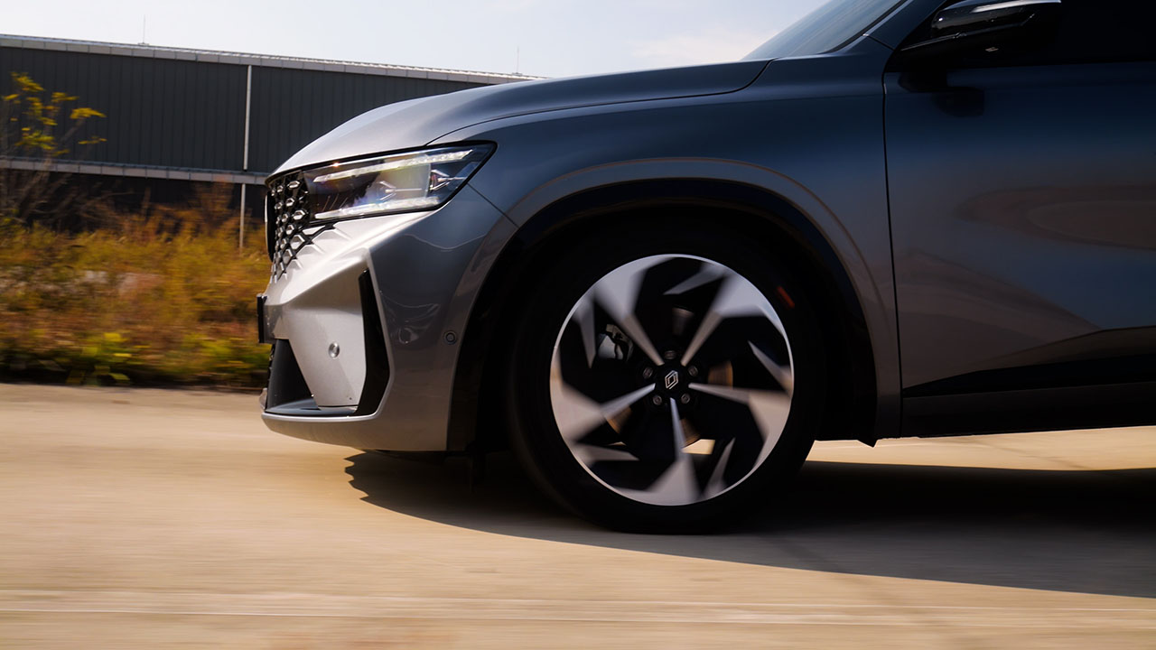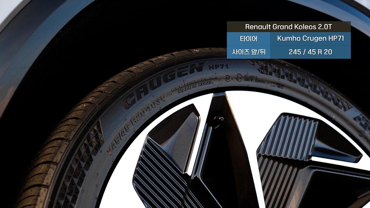 측면부에 그려진 선은 르노 본사가 디자인한 모델들과 동일한 패턴을 유지했다. 쐐기 형태를 띄며 전면에서 후면으로 향하는 형상이다. 이를 통해 측후면이 든든하고 안정감 있게 정리되어 보인다. 휠, 타이어 사이즈는 245/45R20로 금호 타이어의 크루젠 HP71이 장착됐다. 하이브리드 모델과 다른 점은 없으며 타이어 내부에도 동일하게 폼이 장착되어 정숙성에 도움을 준다.