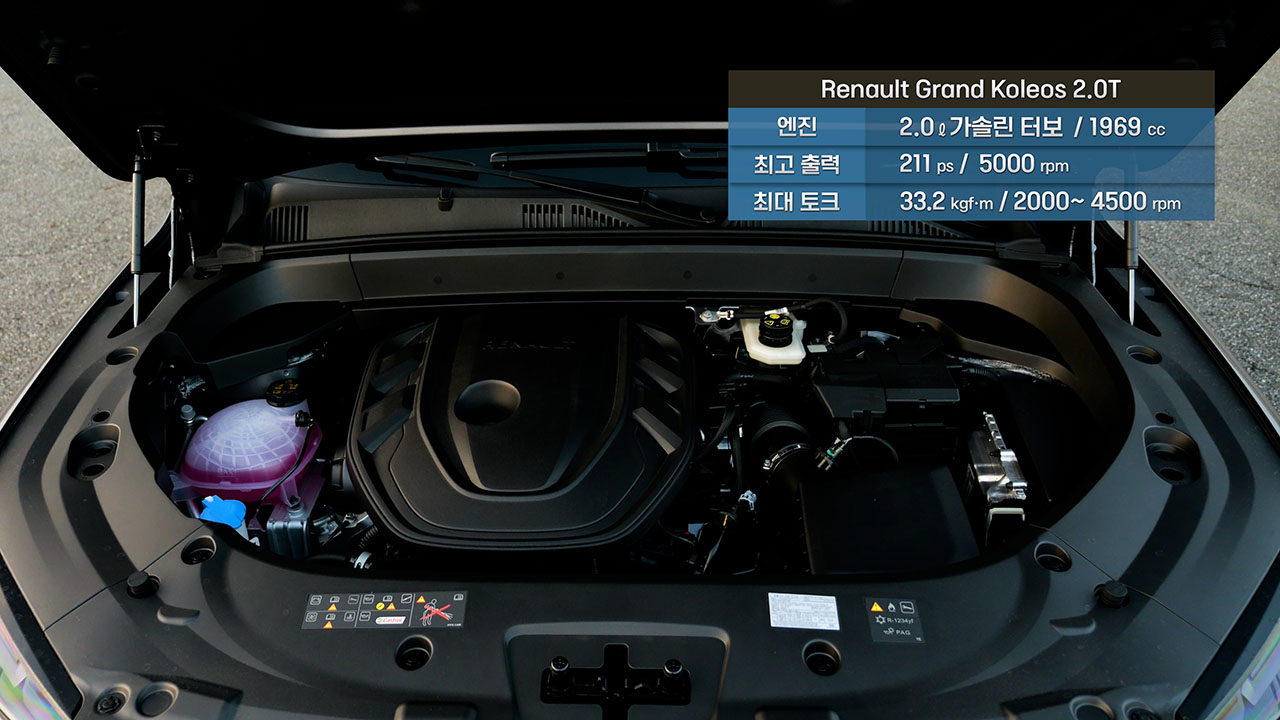 후륜 지지감을 비롯해서 자세제어시스템의 세련미 덕분에 급격한 움직임을 고속에서 연출해도 안정감이 돋보인다. 또한 하이브리드 모델과 비교했을 때 콜레오스 터보는 하이브리드보다 전륜 축의 무게가 1%가량 더 몰려 있음에도 핸들링 감각이나 안정성을 거의 동일하게 갖춰졌다는 점도 주목할 부분이다.