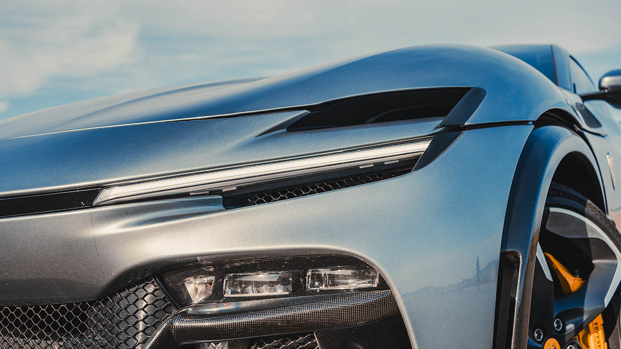 정면에서 보닛을 바라보면 좌, 우측에 공기가 흐를 수 있는 에어로브리지(Aerobridge)가 시선을 이끈다. 이는 F12 베를리네타에서도 관찰할 수 있는 요소인데 2시터 모델인 F12는 이를 다운포스를 높이기 위해 사용했는데 푸로산게의 에어로브리지는 항력을 줄이는 목적으로 쓰인다.