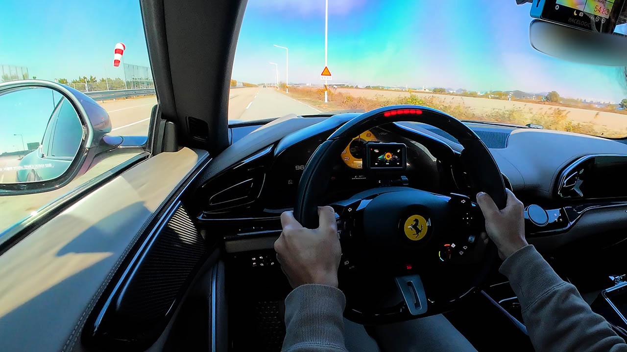 물론 경쾌하다 말할 정도는 아닌데 전장, 전폭, 전고, 윤거 모두 지금까지 페라리가 만든 차량 중 가장 큰 사이즈이기 때문이다. 좌, 우 선회가 거듭될수록 관성에 의한 가속도가 점차 강하게 붙어가는 것으로 체감된다.