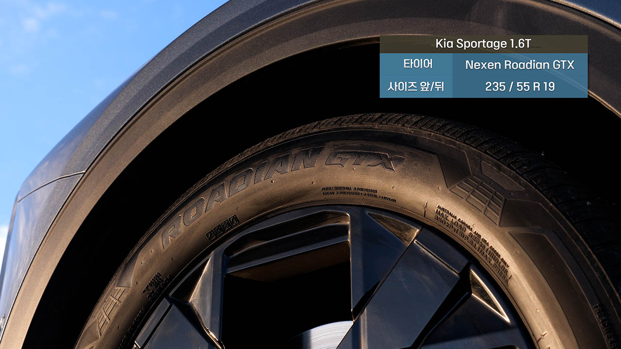 19인치 휠에는 235/55R19 사이즈의 넥센 로디안 GTX 타이어가 장착됐다. 사계절 SUV 전용 타이어이며 제동 성능으로 확인했듯이 종방향 접지력은 무난한 편이다. 하지만 횡방향 접지력(코너링 성능)은 다소 아쉬운 편이다. 이는 순간적인 급 차선 변경을 비롯해 고속 슬라럼에서도 이 약점이 확연하게 느껴진다. 서스펜션은 적극적으로 차를 제어하고 있지만 타이어에 의한 언더스티어 증가 등이 아쉬움의 이유가 된다.