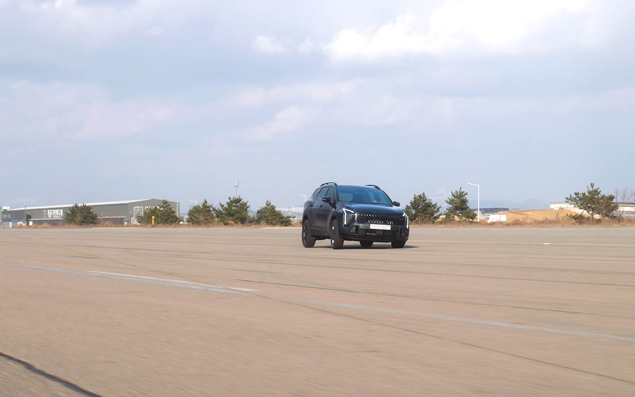 스포티지는 제법 탄탄한 서스펜션을 갖고 있다. 스티어링 조작 후 전, 후륜 축이 유사한 시간차로 기울어지며 차량의 방향을 전환시킨다. 하지만 코너링이 진행되는 바깥 쪽 타이어가 몰려든 차중을 못버티고 밀려나가는 감각이 썩 좋지 않다. 슬라럼에서도 비슷한 현상을 보이는데 이 영향으로 무난한 움직임을 이어나가지 못한다. 때문에 자세제어시스템의 개입 빈도가 잦은 편이다. 서스펜션의 성격으로 볼때 구조 강성 확보, 조금 더 나은 그립이 나오는 타이어를 장착하면 스포티지의 운동 성능이 대폭 개선될 수 있을 것이다. 기아 스포티지의 OE타이어 담당 연구원이 어떤 부분에 최상위 목적을 부여했는지 궁금해 진다.