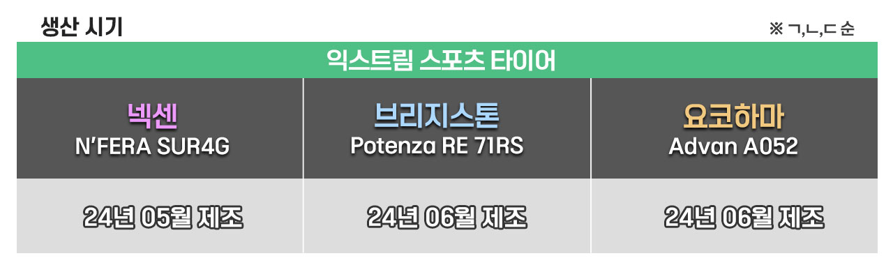 보는 것처럼 각 타이어의 생산은 모두 유사한 시기에 이뤄졌다.