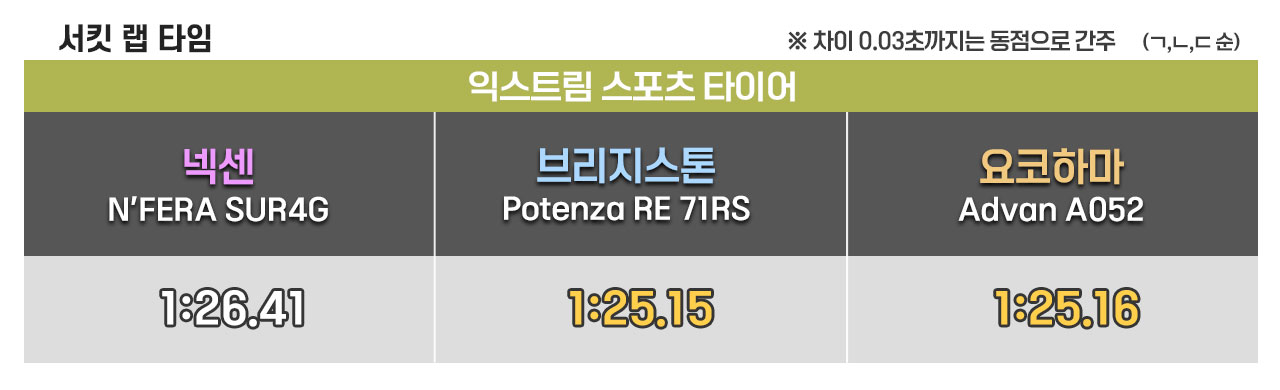 (참고로 서킷 테스트에서 0.03초 미만은 동점 평가해오고 있다.)