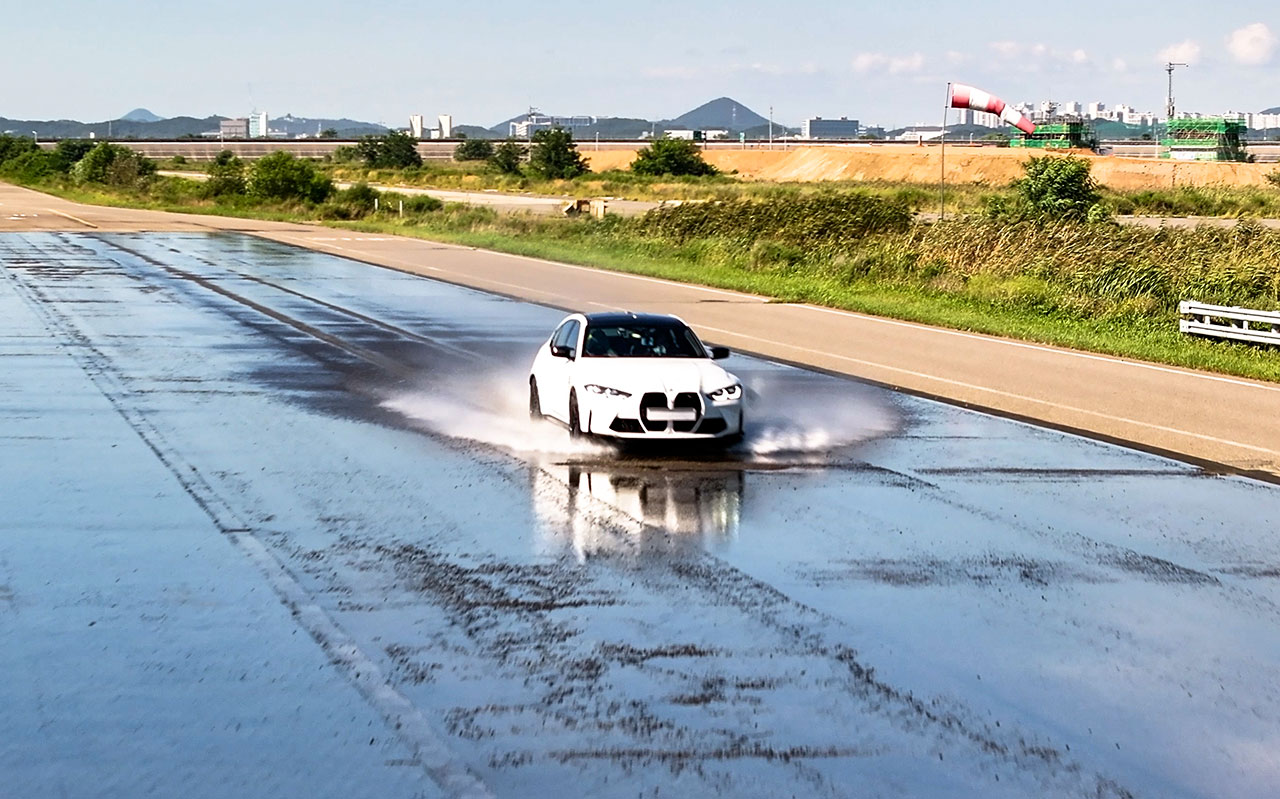 아쉽게도 우리가 테스트한 KATRI(자동차안전연구원)은 젖은 노면 핸들링 평가를 할 수 없다. 첫 번째로 물의 깊이가 일정하지 않은 구간이 많다. 이 때문에 젖은 노면 제동 성능을 확인할 때도 직접 코스를 확인하며 물의 깊이가 일정한 곳을 찾아낸다.