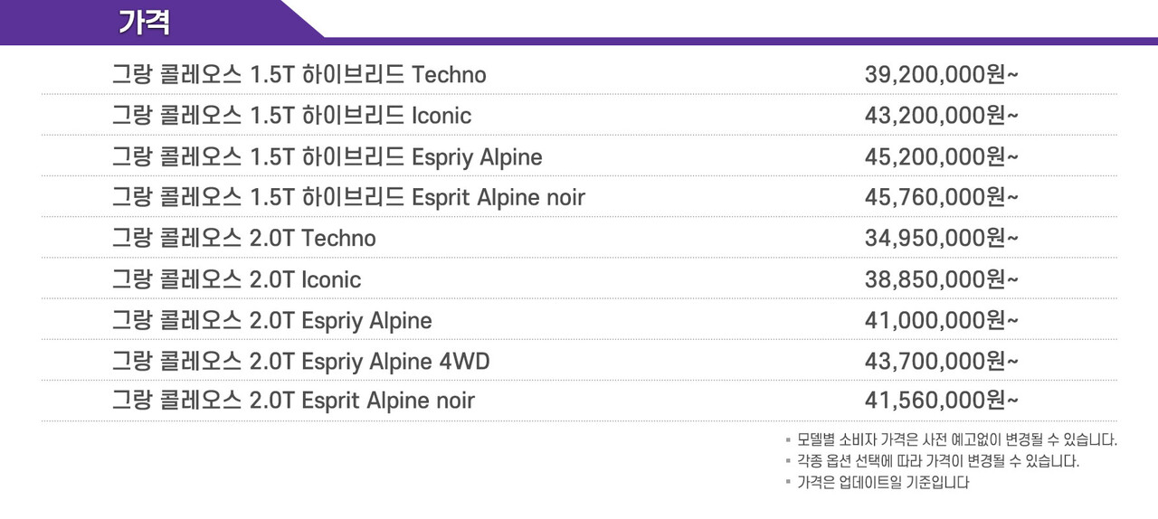 1193회 관련기사 르노 그랑 콜레오스 2.0T [1165회] 키워드 #르노 #그랑 콜레오스 오토뷰 로드테스트팀 autoview@autoview.co.kr 다른기사 보기 저작권자 © 오토뷰 무단전재 및 재배포 금지 개의 댓글 회원로그인 댓글 내용입력 댓글 정렬 최신순 추천순 답글순 BEST댓글 BEST 댓글 답글과 추천수를 합산하여 자동으로 노출됩니다. 닫기 더보기 댓글삭제 삭제한 댓글은 다시 복구할 수 없습니다. 그래도 삭제하시겠습니까? 비밀번호 닫기 댓글수정 댓글 수정은 작성 후 1분내에만 가능합니다. 본문 / 400 비밀번호 닫기 내 댓글 모음 닫기 최신 뉴스 포르쉐, 예술 창업 지원 ‘포르쉐 프런티어 스타트업’ 데모데이 개최 2025.11.26 아우디, 폭스바겐 그룹 우리재단과 오토핵 2025에 아우디 A7 지원 2025.11.26 메르세데스-벤츠, ‘메르세데스-마이바흐 V12 에디션’ 출시 2025.11.26 벤츠 딜러 ‘한성자동차’, 창립 40주년 기념 ‘한성에디션’ 고객 인도 2025.11.26 DJI, 블랙프라이데이 프로모션 진행... 전 제품군 최대 30% 할인 2025.11.26 한국타이어, ‘드라이버리뷰 커스터머 초이스 어워드’ 겨울용 타이어 부문 수상 2025.11.26