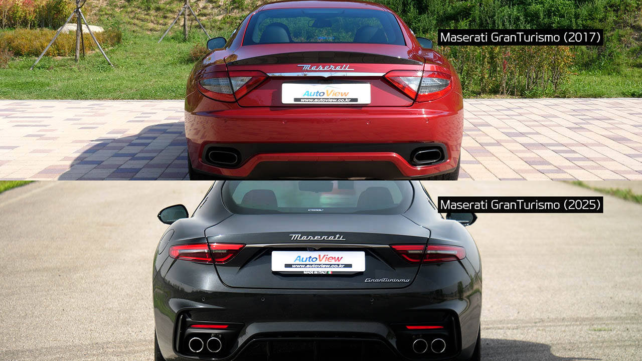 후면부도 앞서 느낀 인상과 같은 결이다. 다소 과격함이 느껴졌던 비율을 가진 트렁크 리드 스포일러와 리어램프가 전 세대 모델의 특징이었다. 현 세대 모델은 보기에 더 안정적이고 만족스러운 비율을 갖췄다. C필러의 마세라티 앰블럼은 카브리오 모델이 가질 수 없는 쿠페만의 디테일 요소다. 후면부의 트렁크 리드가 가지는 넓은 곡선은 펜더의 볼륨감을 높인다. 쿼드 머플러, 디퓨저 요소도 입체감 있으면서도 간결하다. 결과 현 세대 모델의 디자인은 전 세대를 압도한다.