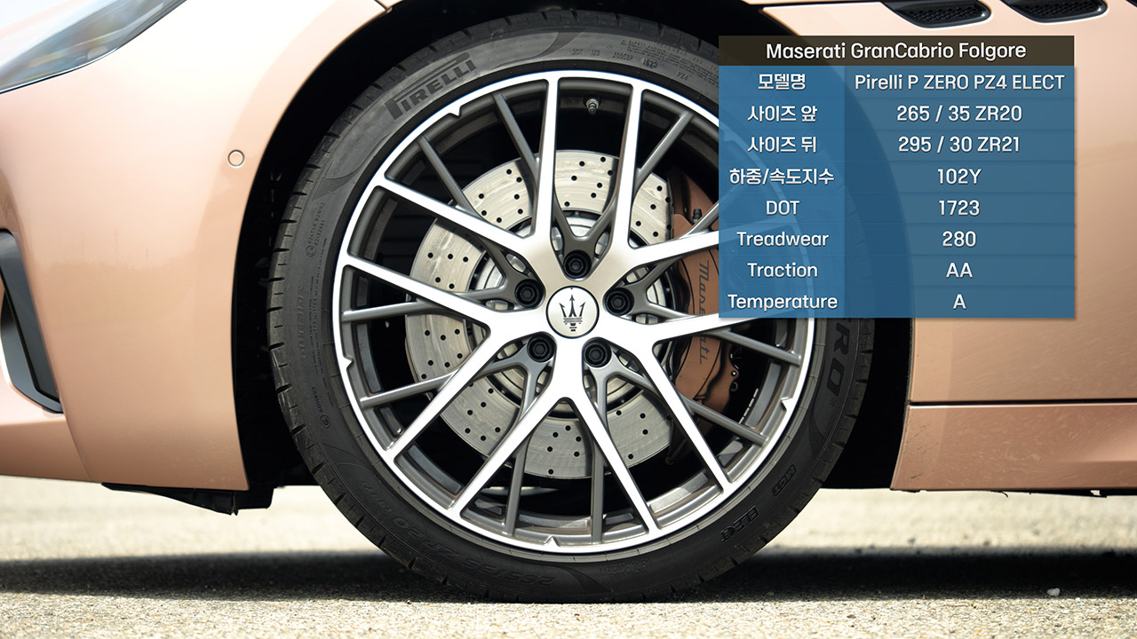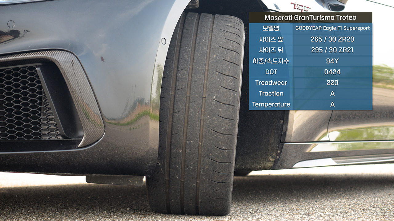 차는 정말 타봐야 알 수 있다. 스펙만 가지고는 차를 가늠할 수 있을지는 모르지만 안다고 착각하지는 말아줬으면 좋겠다. 트로페오는 전륜 265/30ZR20, 후륜 295/30ZR21 사이즈의 굿이어 이글 F1 슈퍼 스포츠이 장착됐다. 미쉐린 파일럿 스포츠 4S, 콘티넨탈 스포츠 콘택트 7급의 고성능 타이어다. 이 조합의 기록은 34.18m로 확인됐다. 전 세대 모델보다 더 짧게 멈춰설 수 있다.