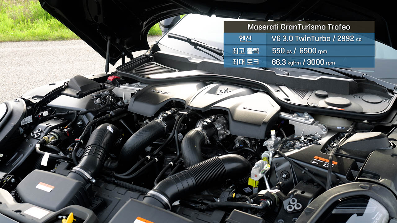 내연기관 모델인 그란투리스모 트로페오는 페라리의 자연흡기 V8 엔진을 떠나보내고 마세라티가 직접 개발한 네튜노 V6 3리터 트윈터보을 탑재했다. 최고출력 550마력, 최대토크 66.28kgfm으로 전 세대의 MC 스트라달레보다 더 강력한 엔진을 갖게 됐다. 제원 기록은 0-100km/h 3.50초로 가속능력은 폴고레에게 뒤쳐진다. 실제 계측 기록은 3.60초를 기록하며 제원 기록은 달성하지 못했지만 폴고레보다 제원 기록 편차는 더 좁았다.