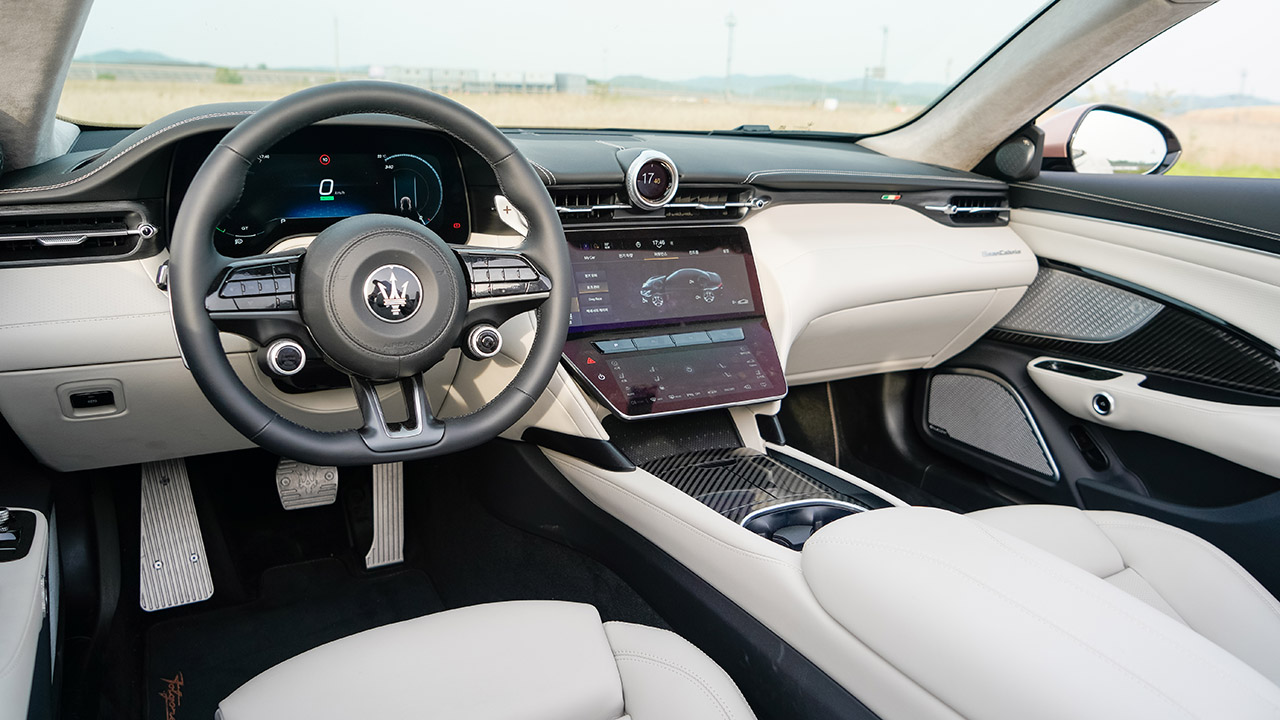 스티어링을 중심으로 수많은 버튼들이 자리하며 복잡함을 느꼈던 과거 그란투리스모의 운전석이지만 이제는 한층 간결해졌다. 물론 아날로그에 대한 아쉬움이 없는 것은 아니다. 적어도 마세라티 엠블럼이 배경으로 새겨진 시계 정도는 아날로그로 남겨뒀다면 익조틱 GT 모델로서 고급감은 더 높일 수 있지 않았을까? 마세라티 가치를 상징했던 아이콘을 무척 쉽게 도려냈다는 것이 의아했다.