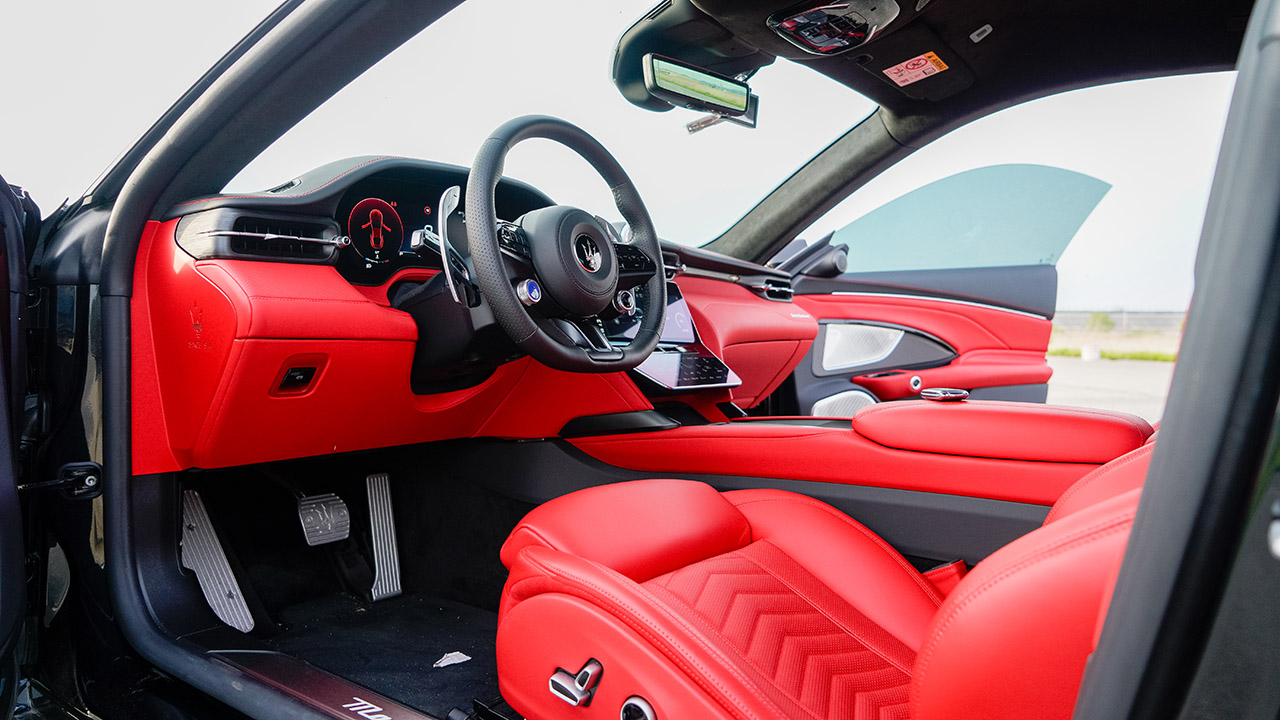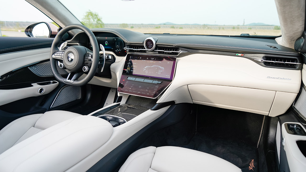 시트 헤드레스트 및 안전벨트 클립에는 마세라티 앰블럼이 새겨졌다. 플로어 매트에는 트림명이 자수로 놓인다. 조수석 송풍구 하단에는 모델명 엠블럼이 위치한다. 엠블럼이 놓여도 괜찮은 안전한 위치인지는 모르겠지만 멋진 요소임은 틀림없다.