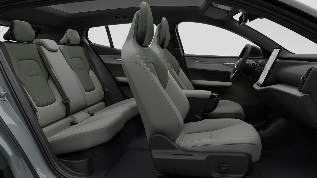 차콜 색상으로 마감된 인테리어는 책임감 있게 생산된 울과 재활용 폴리에스터를 사용한 울 블렌드, 스웨덴 및 핀란드 자연에서 얻은 소나무 오일로 만든 바이오 소재 노르디코(Nordico) 등 천연 소재를 사용해 현대적이면서 아늑한 분위기를 연출한다. 여기에 ▲울 블렌드 도어 인서트 ▲천연 아마씨를 사용한 데코 ▲블랙 헤드라이닝 ▲투명 에어벤트 ▲스포츠 스티어링 휠 등을 비롯해 ▲스칸디나비아 자연에서 영감 받은 다섯 가지 앰비언트 라이트 테마와 ▲스웨덴 마리에스타드(Mariestads)에서 발견된 화강암의 패턴을 연출한 스톤 그레인 내부 패널 마감 등으로 스웨디시 감성을 더했다.