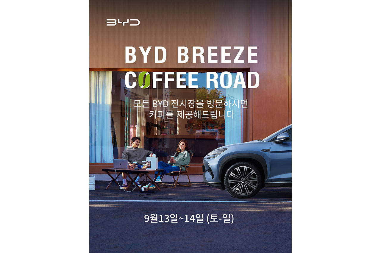BYD코리아가 오는 13일, 14일 양일간 전국 21개 BYD Auto 전시장에서 고객 체험 행사 ‘BYD 브리즈 커피 로드(BYD Breeze Coffee Road)’를 개최한다고 밝혔다.