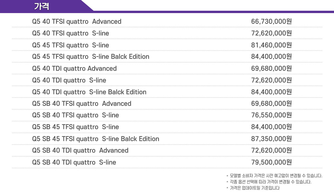 1224회 아우디 Q5 40 TDI 콰트로 S-line 블랙 에디션 키워드 #아우디 오토뷰 로드테스트팀 autoview@autoview.co.kr 다른기사 보기 저작권자 © 오토뷰 무단전재 및 재배포 금지 개의 댓글 회원로그인 댓글 내용입력 댓글 정렬 최신순 추천순 답글순 BEST댓글 BEST 댓글 답글과 추천수를 합산하여 자동으로 노출됩니다. 닫기 더보기 댓글삭제 삭제한 댓글은 다시 복구할 수 없습니다. 그래도 삭제하시겠습니까? 비밀번호 닫기 댓글수정 댓글 수정은 작성 후 1분내에만 가능합니다. 본문 / 400 비밀번호 닫기 내 댓글 모음 닫기 최신 뉴스 포르쉐, 예술 창업 지원 ‘포르쉐 프런티어 스타트업’ 데모데이 개최 2025.11.26 아우디, 폭스바겐 그룹 우리재단과 오토핵 2025에 아우디 A7 지원 2025.11.26 메르세데스-벤츠, ‘메르세데스-마이바흐 V12 에디션’ 출시 2025.11.26 벤츠 딜러 ‘한성자동차’, 창립 40주년 기념 ‘한성에디션’ 고객 인도 2025.11.26 DJI, 블랙프라이데이 프로모션 진행... 전 제품군 최대 30% 할인 2025.11.26 한국타이어, ‘드라이버리뷰 커스터머 초이스 어워드’ 겨울용 타이어 부문 수상 2025.11.26