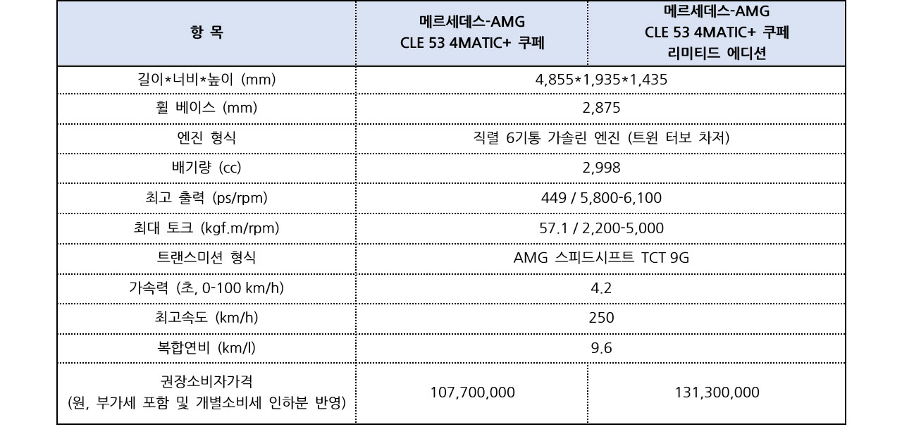- CLE 53 4MATIC+ 쿠페 리미티드 에디션 : 1억 3,130만 원