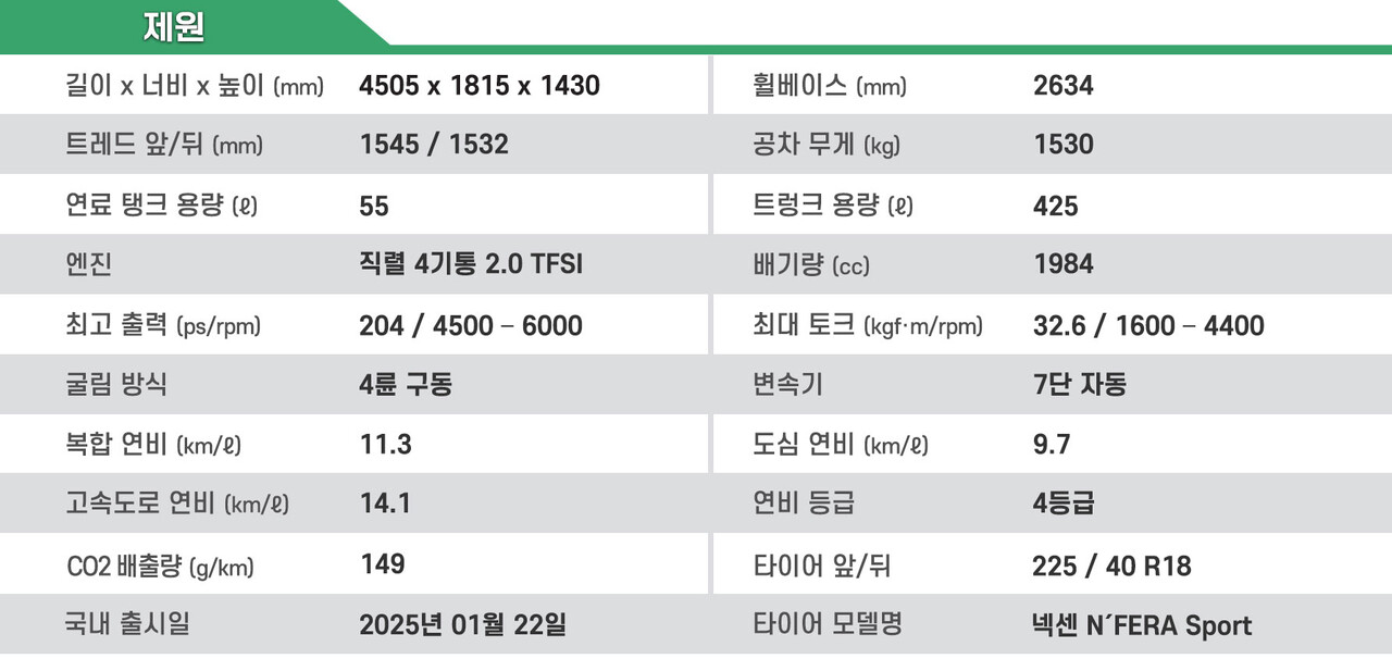 1226회 관련기사 폭스바겐 골프 2.0 TDI [1200회] 아우디 RS 3 [1228회] 키워드 #아우디 오토뷰 로드테스트팀 autoview@autoview.co.kr 다른기사 보기 저작권자 © 오토뷰 무단전재 및 재배포 금지 개의 댓글 회원로그인 댓글 내용입력 댓글 정렬 최신순 추천순 답글순 BEST댓글 BEST 댓글 답글과 추천수를 합산하여 자동으로 노출됩니다. 닫기 더보기 댓글삭제 삭제한 댓글은 다시 복구할 수 없습니다. 그래도 삭제하시겠습니까? 비밀번호 닫기 댓글수정 댓글 수정은 작성 후 1분내에만 가능합니다. 본문 / 400 비밀번호 닫기 내 댓글 모음 닫기 최신 뉴스 포르쉐, 예술 창업 지원 ‘포르쉐 프런티어 스타트업’ 데모데이 개최 2025.11.26 아우디, 폭스바겐 그룹 우리재단과 오토핵 2025에 아우디 A7 지원 2025.11.26 메르세데스-벤츠, ‘메르세데스-마이바흐 V12 에디션’ 출시 2025.11.26 벤츠 딜러 ‘한성자동차’, 창립 40주년 기념 ‘한성에디션’ 고객 인도 2025.11.26 DJI, 블랙프라이데이 프로모션 진행... 전 제품군 최대 30% 할인 2025.11.26 한국타이어, ‘드라이버리뷰 커스터머 초이스 어워드’ 겨울용 타이어 부문 수상 2025.11.26