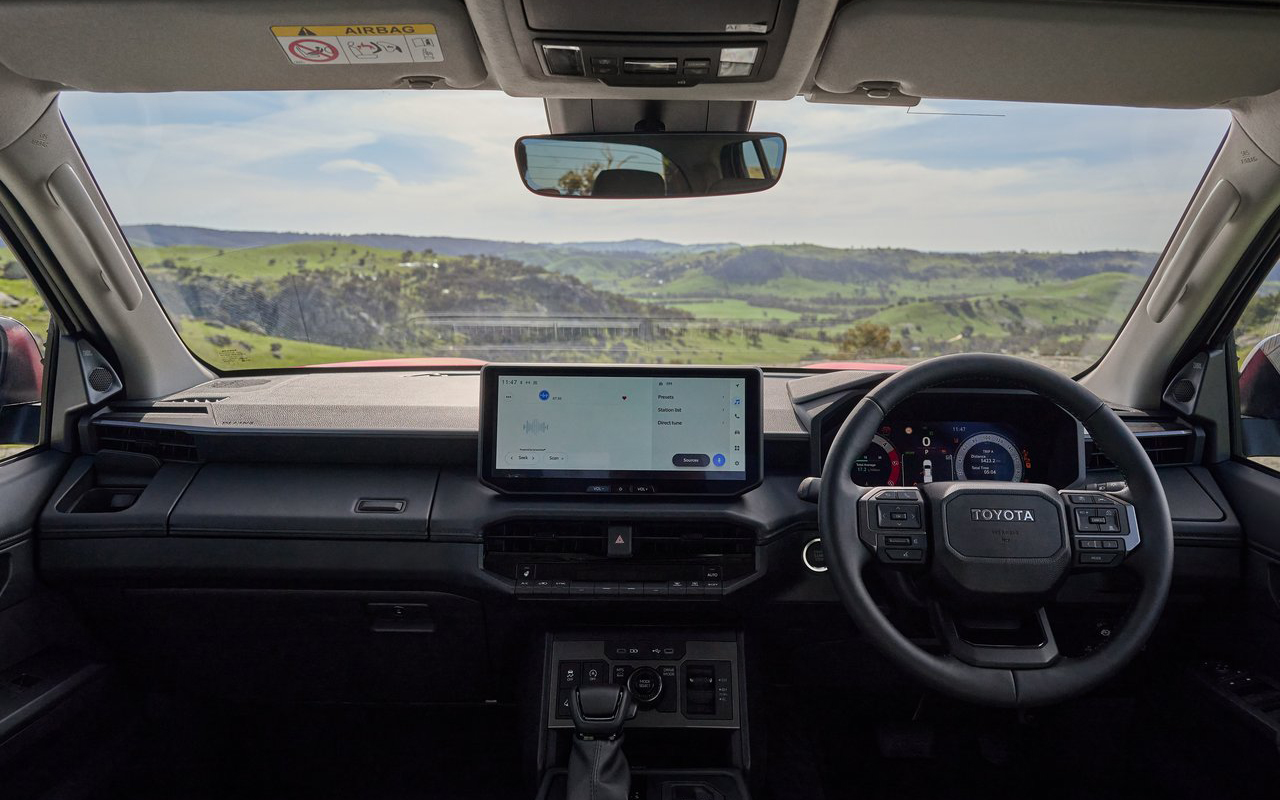 실내는 외부 시야 확보를 일순위로 두고 수평선을 낮게 배치했다. 디지털 계기판이 모든 트림에 적용되며 워크메이트, SR 트림은 7인치, SR5 이상 트림부터는 12.3인치 디스플레이가 적용된다. 또한 모든 트림에는 12.3인치 인포테인먼트 터치스크린 디스플레이가 기본 탑재된다. 안드로이드 오토 및 애플 카플레이, 내장형 내비게이션, 음성 명령 기능도 갖춘다.