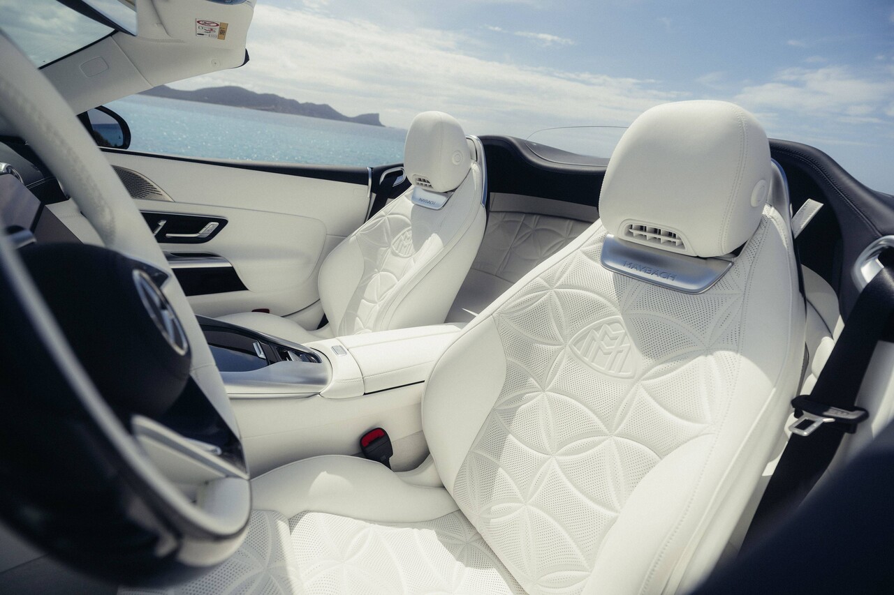 실내는 크리스탈 화이트 마누팍투어 익스클루시브 나파 가죽을 적용해 우아한 분위기를 제공한다. 나파 가죽은 도어 패널, 센터 콘솔 및 시트에 적용됐으며, 시트 커버에는 꽃을 형상화한 디자인 패턴을 적용해 유려한 분위기를 조성한다. 시트 후면 역시 화이트 색상 가죽으로 마감했고, 아연 도금된 시트 등받이와 실버 크롬 트림이 눈에 띄는 대비감을 선사한다.